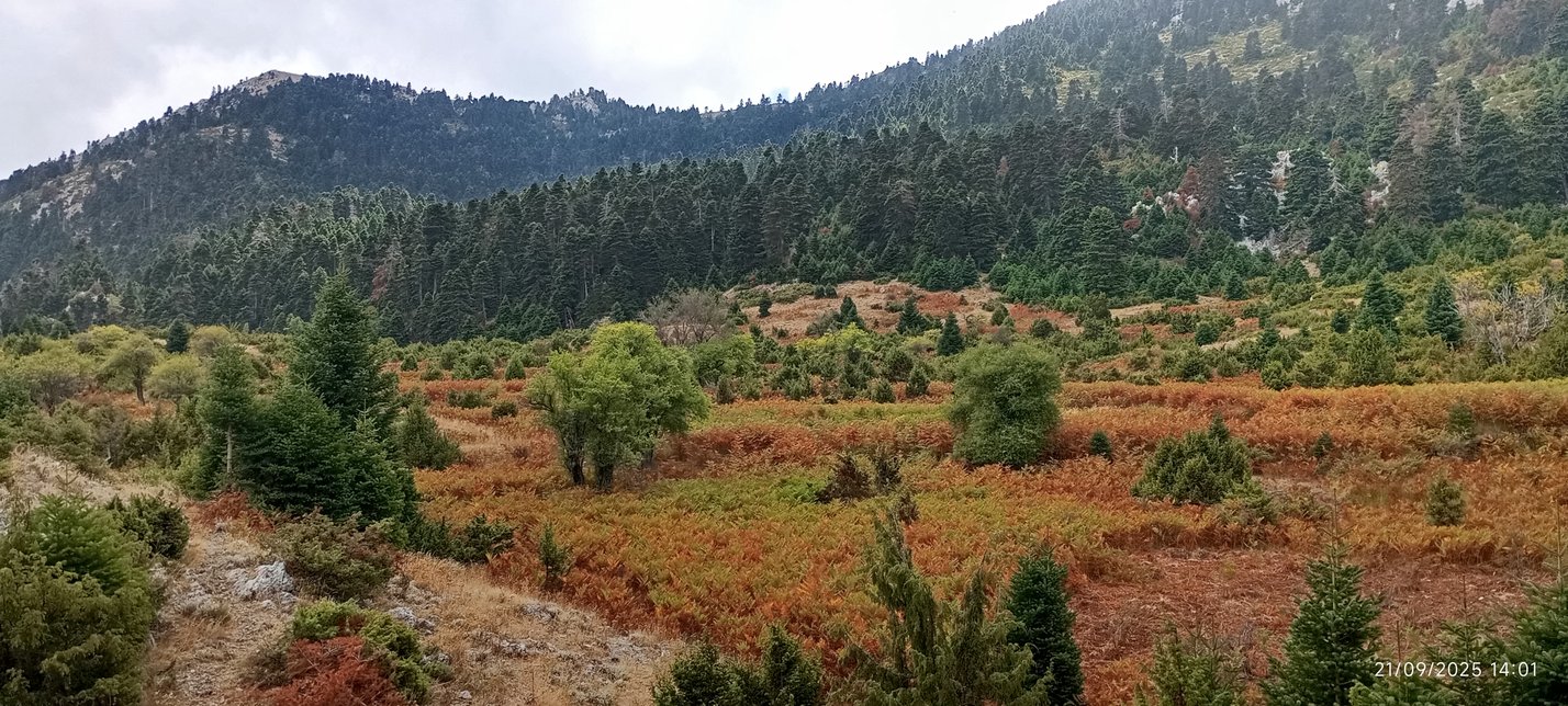 Η θέα δε από το Κατάρτι, μοναδική. Κατηφορίζοντας προς το Μακρυλίβαδο, αυτό που βλέπουμε είναι μια αντιγραφή των καρτ ποστάλ από τις Άλπεις. Στο βάθος φαίνεται το καλύβι του Θανάση, ανάμεσα σε φτέρες και έλατα. Αν είστε τυχεροί και είναι εκεί, ένα τσίπουρο θα το πιείτε. Από το καλύβι ξεκινάει ο δρόμος της επιστροφής, μέσα από τα παλιά χωράφια που καλλιεργούσαν οι πρόγονοι των τωρινών κατοίκων της Αγίας Σοφίας.